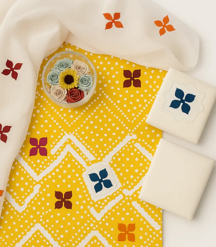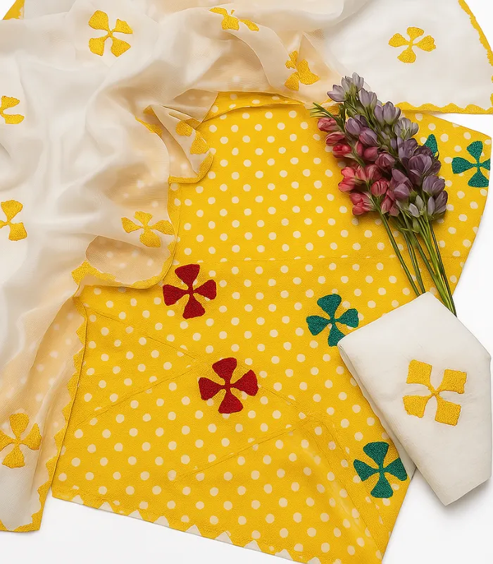 Yellow 3PC Applique Suit – Chunri Dupatta